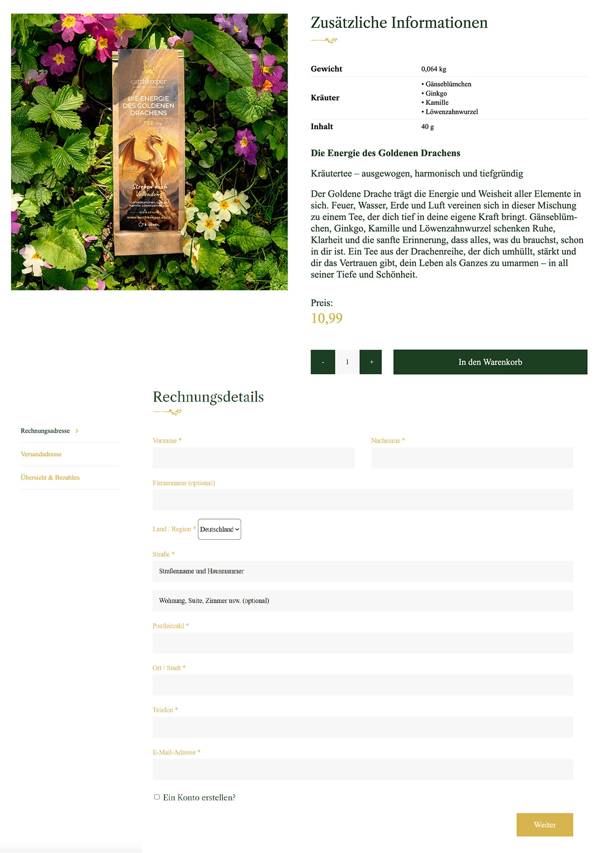 earthkeeper bietet sorgfältig zusammengestellte Wildkräutertees an, die auf traditionellem Heilwissen basieren. Jede Mischung ist thematisch konzipiert und soll Körper und Seele ins Gleichgewicht bringen. Zu den Mischungen gehören u. a. „Die Kraft des Bären” und „Ich wärme dein Herz”.