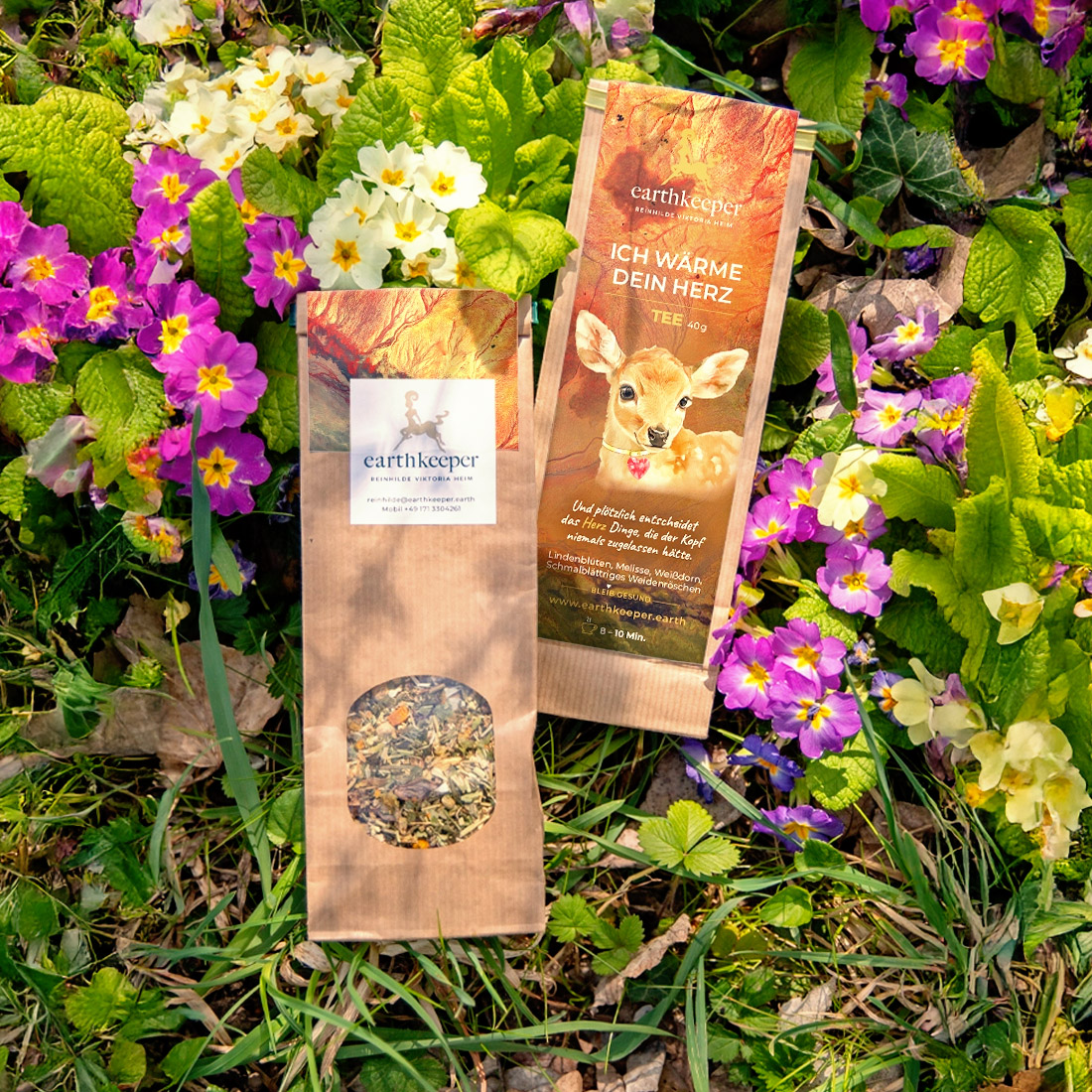 Das Rehkitz mit dem Herzanhänger blickt dich an, als wollte es sagen: „Vertrau deinem Herzen, es kennt den Weg.“ Und plötzlich entscheidest du Dinge, die dein Kopf nie gewagt hätte. Diese Mischung schenkt dir Geborgenheit, wie ein sanftes Leuchten von innen. Lindenblüten und Melisse lindern und beruhigen, Weißdorn stärkt und schützt dein Herz, während das Schmalblättrige Weidenröschen dir hilft, alles loszulassen, was du nicht mehr brauchst. Kräuter voller Zärtlichkeit, die Wärme schenken und dein Herz heilen können.